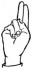На ћирилици написано АНГЕЛИНА СЕКУЛОВ састоји се из 15 слова [?]. Исписано ћириличном једноручном азбуком за глувонеме: